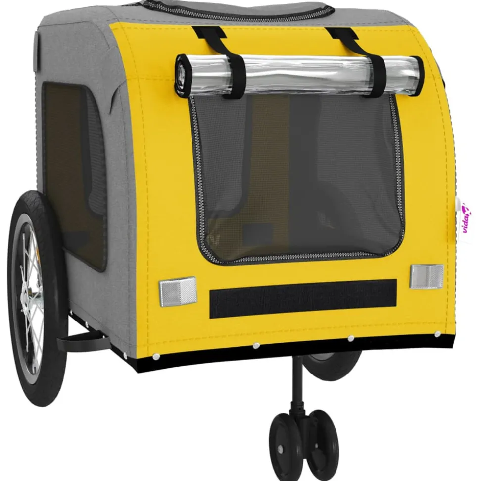 Cette remorque de vélo pour animaux de compagnie pratique est un excellent complément à la journée de votre animal de compagnie, lui permettant de profiter d’un voyage plus confortable. Cadre durable : le fer est un matériau solide et dur. Il est très apprécié dans la construction industrielle et la fabrication de meubles. Avec un cadre en fer, la remorque de vélo est robuste et fiable, ce qui vous permet de rouler en toute sécurité sur la route. Remorque de vélo confortable : cette remorque pour vélo est fabriquée en tissu oxford et comprend une housse en PVC pour protéger votre animal de compagnie de la bruine. De plus, le fond de la remorque est équipé d’une planche de support de charge noire pour un espace confortable. Conception pratique : Les portes avant et arrière à fermeture éclair facilitent l’entrée et la sortie. Les fenêtres en filet et le toit à fermeture éclair permettent à l’air de circuler à l’intérieur et de garder votre animal de compagnie au frais pendant le voyage.Conduite en toute sécurité : la remorque de vélo dispose de deux grandes roues arrière et d’une petite roue avant qui permettent un déplacement en douceur et en toute sécurité sur différents terrains et les réflecteurs à l’extérieur offrent une visibilité dans l’obscurité, et le drapeau peut augmenter la sécurité routière. Nombreuses applications : parfaite pour transporter les petits chiens et les animaux de compagnie, cette remorque de vélo pour animaux de compagnie peut être attachée à votre vélo facilement. Elle peut également être utilisée pour transporter des courses, d’équipement de camping, des articles de sport ou tout autre objet que vous souhaitez emporter avec vous !