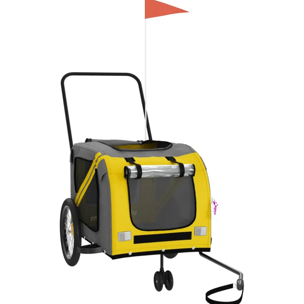 Cette remorque de vélo pour animaux de compagnie pratique est un excellent complément à la journée de votre animal de compagnie, lui permettant de profiter d’un voyage plus confortable. Cadre durable : le fer est un matériau solide et dur. Il est très apprécié dans la construction industrielle et la fabrication de meubles. Avec un cadre en fer, la remorque de vélo est robuste et fiable, ce qui vous permet de rouler en toute sécurité sur la route.Remorque de vélo confortable : cette remorque pour vélo est fabriquée en tissu oxford et comprend une housse en PVC pour protéger votre animal de compagnie de la bruine. De plus, le fond de la remorque est équipé d’une planche de support de charge noire pour un espace confortable.Conception pratique : Les portes avant et arrière à fermeture éclair facilitent l’entrée et la sortie. Les fenêtres en filet et le toit à fermeture éclair permettent à l’air de circuler à l’intérieur et de garder votre animal de compagnie au frais pendant le voyage.Conduite en toute sécurité : la remorque de vélo dispose de deux grandes roues qui permettent un déplacement en douceur et en toute sécurité sur différents terrains et les réflecteurs à l’extérieur offrent une visibilité dans l’obscurité, et le drapeau peut augmenter la sécurité routière.Nombreuses applications : parfaite pour transporter les petits chiens et les animaux de compagnie, cette remorque de vélo pour animaux de compagnie peut être attachée à votre vélo facilement. Elle peut également être utilisée pour transporter des courses, d’équipement de camping, des articles de sport ou tout autre objet que vous souhaitez emporter avec vous !