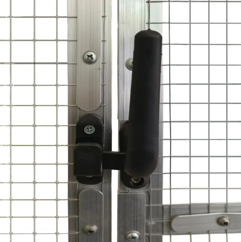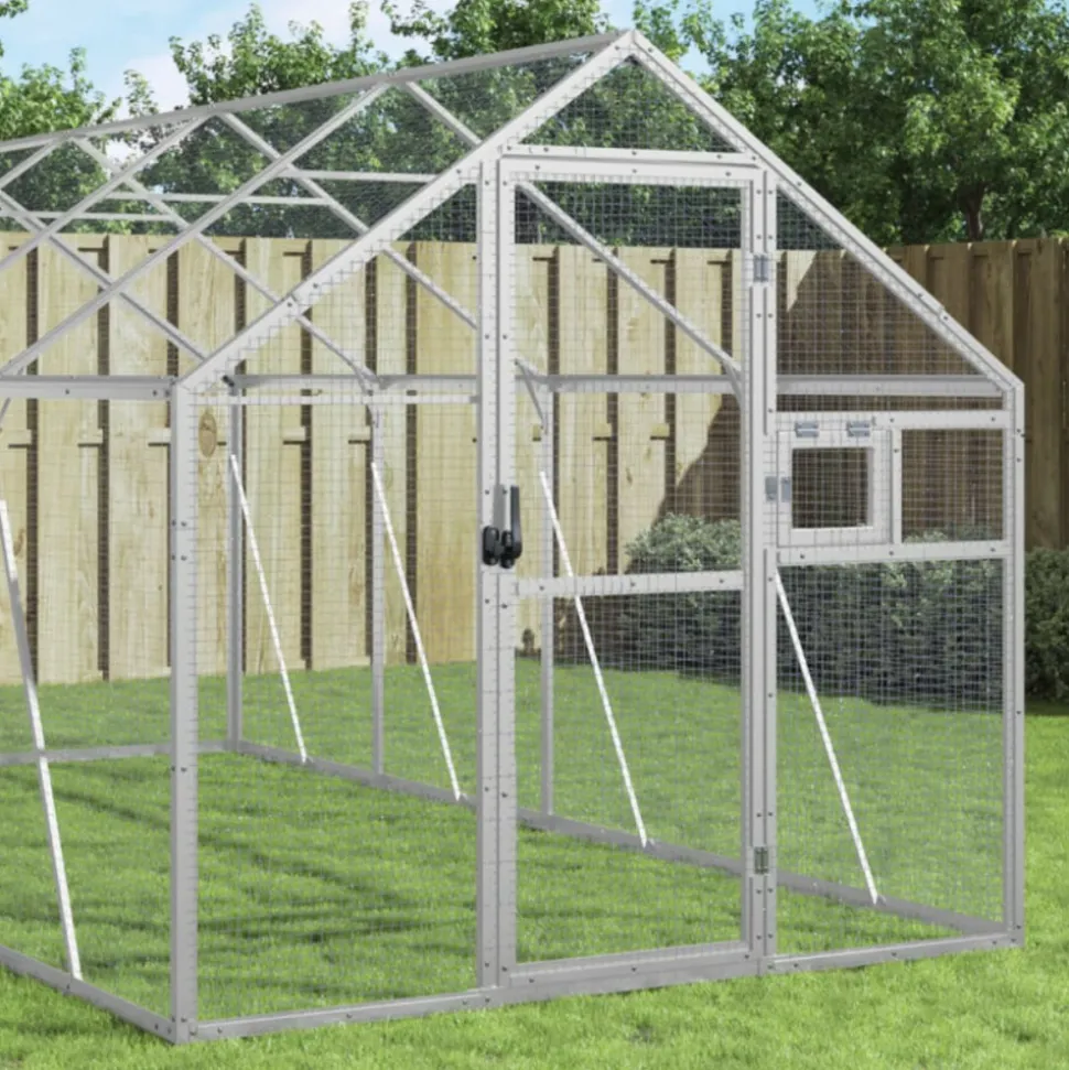 Cette volière offre un grand endroit confortable pour que vos oiseaux volent et jouent en toute sécurité. Cadre robuste : l’aluminium est un métal léger et solide. Il résiste à la corrosion grâce à une couche d’oxyde auto-protectrice. Grâce à la construction robuste en aluminium, cette volière est conçue pour durer.Grille métallique : la cage à perruches est équipée de grilles métalliques qui évitent les méfaits et les accidents inattendus. De plus, elles vous permettent d’observer vos oiseaux tous les jours et leur garantissent un large champ de vision et suffisamment d’air frais.Grande espace d’activité : la cage à perroquets offre à vos oiseaux un vaste espace d’activité pour se promener, jouer et voler facilement. En outre, elle convient également à d’autres petits animaux tels que les lapins, les canards, les poulets, les oies, etc.Porte et fenêtre verrouillables : la porte à charnière avec un système de verrouillage verrouillable de la grande cage à oiseaux assure une sécurité supplémentaires pour vos oiseaux. La grande cage à perroquets dispose également d’une fenêtre verrouillable pour faciliter l’alimentation. Couleur : argentéMatériau : aluminium, grille métallique soudée galvaniséeDimensions : 179 x 1000 x 114/185 cm (l x P x H)Dimensions de la porte : 61 x 155 cm (L x l)Dimensions de la fenêtre verrouillable : 25 x 20 (L x l)Taille de la grille : 1 x 1 cm (L x l)L’assemblage est requis Attention, il faut porter des gants de protection. Le port de gants de protection est obligatoire. Veuillez porter des lunettes de sécurité, des gants, des chaussures de sécurité et un casque (protection de la tête) lorsque vous installez le produit. N’installez pas le produit dans des conditions météorologiques extrêmes telles que des vents forts ou des températures basses. Ne laissez pas les enfants et les animaux domestiques dans la zone d’assemblage. Le produit doit être construit sur une surface plane. Il est recommandé de fixer le produit à un objet inamovible ou au sol. Veillez à ce que le toit soit exempt de neige et de feuilles. De fortes quantités de neige sur le toit peuvent endommager le produit. Gardez les portes fermées et verrouillées pour éviter les dommages causés par le vent. Ne vous tenez pas sur le toit.Couleur : argentéMatériau : aluminium, grille métallique soudée galvaniséeDimensions : 179 x 1000 x 114/185 cm (l x P x H)Dimensions de la porte : 61 x 155 cm (L x l)Dimensions de la fenêtre verrouillable : 25 x 20 (L x l)Taille de la grille : 1 x 1 cm (L x l)L’assemblage est requis