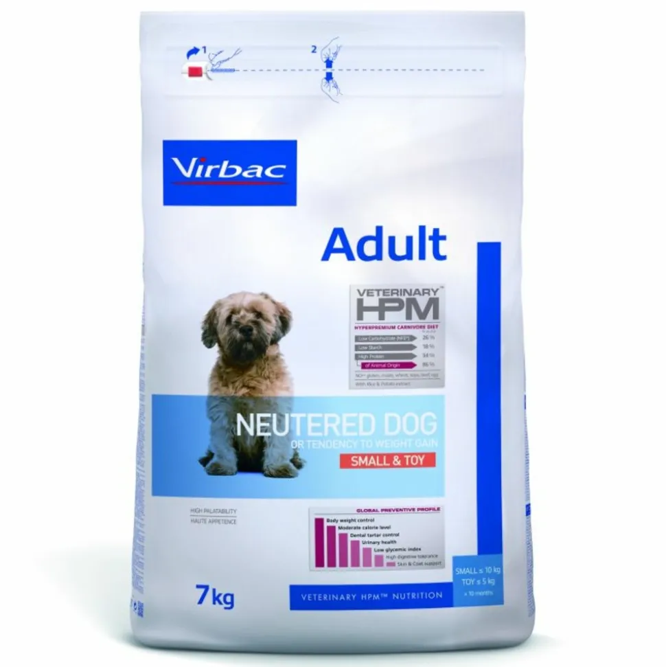 Les Croquettes chiots VIRBAC VETERINARY HPM DOG ADULT NEUTERED SMALL & TOYS sont des croquettes complètes physiologiques pour chiens adulte stérilisé ayant tendance à l’embonpoint de petite race (<10 kg) de plus de 10 mois.