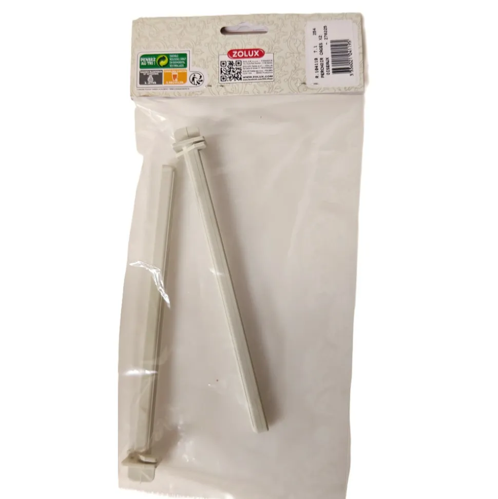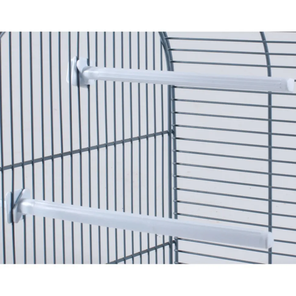 - Perchoir pour oiseaux en plastique avec un système de fixation à tourner entre les barreaux de la cage.