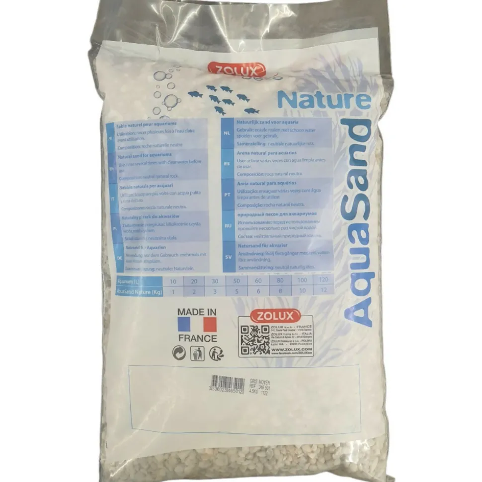 Gravier décoratif aquasand nature.Matières premières origine France transformées et conditionnées en France.Couleur gris et blanc.Granulométrie 4/8mm.Sac de 4.5 kg.Avant utilisation rincer plusieurs fois à l’eau claire.