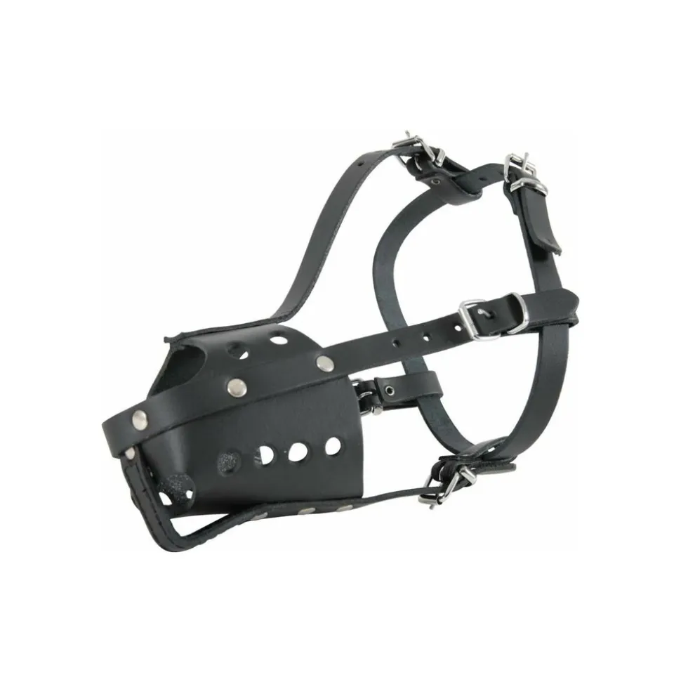 Muselière en cuir pour chien type police noire