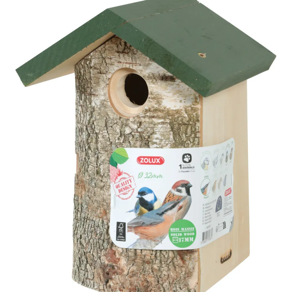 - Nichoir en bois massif entrée ø32 mm pour oiseaux