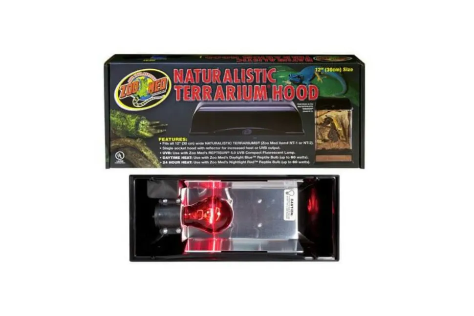 Les rampes Naturalistic Terrarium® Hood de ZooMed sont conçues pour s’adapter parfaitement aux terrariums Naturalistic de la marque. Elles intègrent un réflecteur pour maximiser la diffusion de la lumière et de la chaleur, ainsi qu’une ou deux douilles selon le modèle pour accueillir des lampes UVB ou chauffantes.