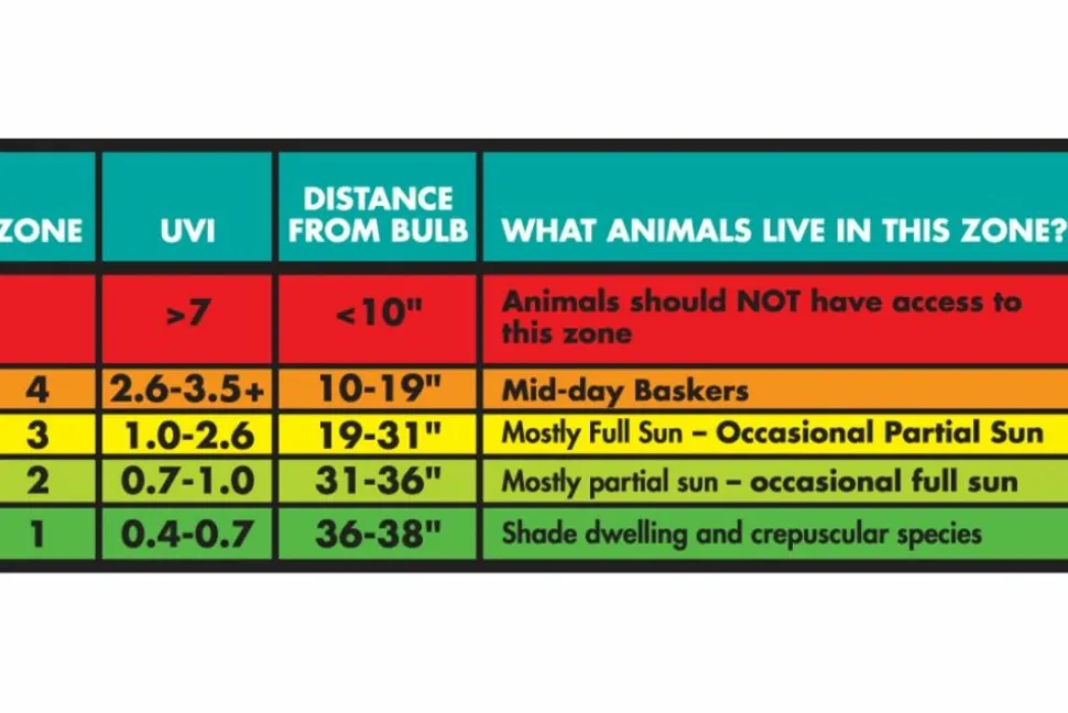 – Haute émission UVB (10%) : favorise la synthèse de la vitamine D3 indispensable à l’assimilation du calcium pour les espèces necessitant une forte exposition aux UVB