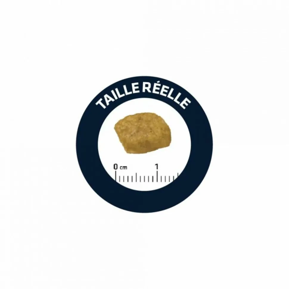 Maïs, riz, farine de gluten de maïs, graisse animale, protéines déshydratées de porc, oeuf déshydratée, farine de soja, pulpe de betterave, protéines animales hydrolysées, sérum de lait déshydratée, protéines déshydratés de poisson, carbonate de calcium, chlorure de potassium, inuline.