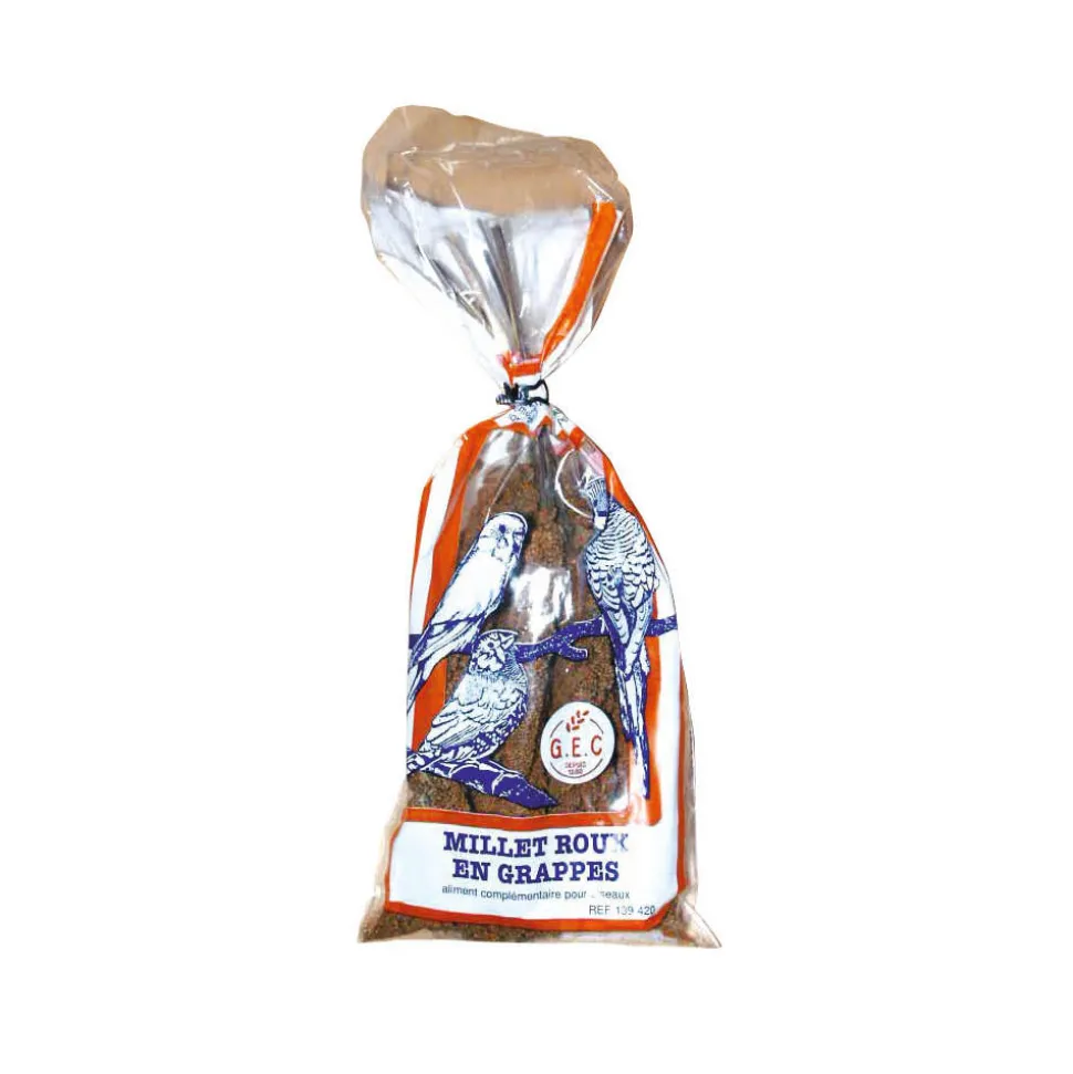 Le millet est l’une des friandises préférées des oiseaux. Distribué en grappes, le millet a l’avantage de se présenter comme dans la nature. Les oiseaux apprécient donc aussi de s’y accrocher pour picorer tranquillement. Sac de millet roux de 200 G
