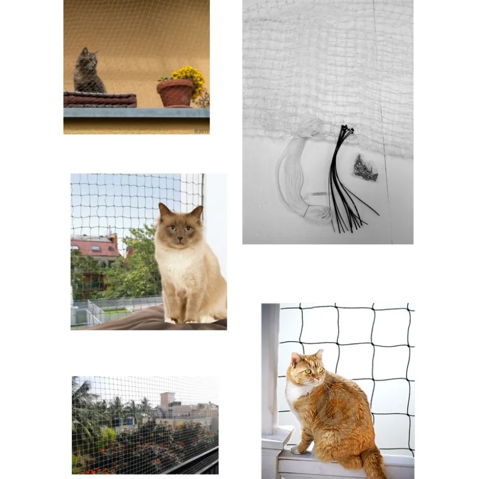 Les chats aiment pouvoir observer l’extérieur depuis le confort de leur coussin. Pour éviter qu’ils ne s’échappent par la fenêtre ou qu’ils ne tombent du balcon, il est fortement conseillé d’utiliser un filet de balcon. Pouvant être utilisé en extérieur comme en intérieur, ce filet de balcon moyen modèle est renforcé avec un fil de métal qui le rend parfaitement résistant à l’usure ainsi qu’aux morsures de votre tigre de salon fugueur. La taille de maille de ce filet de balcon imperméable est de 3x3cm.