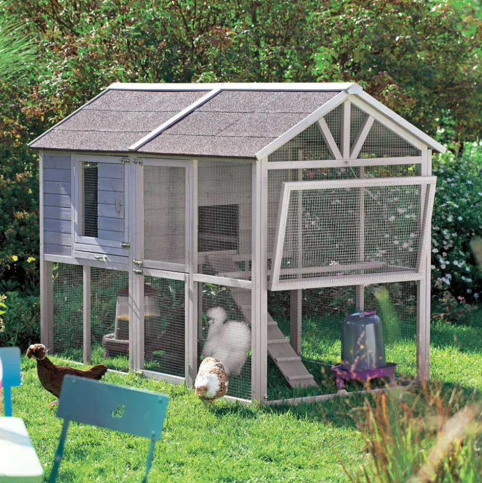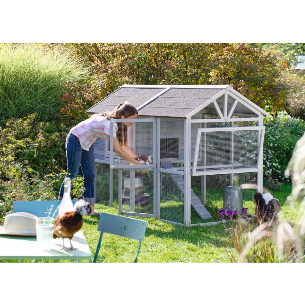 De montage facile, ce poulailler Guadiana fabriqué en bois FSC, offre à vos poules le confort nécessaire à leur bien-être au quotidien. Intégrant trois nichoirs avec accès par l’extérieur, d’une rampe donnant accès au parc extérieur. Conçu pour durer, ce poulailler Guadiana présente un toit en shingle, un matériau apprécié pour sa résistance et sa simplicité d’entretien. Poulailler Guardiana en bois pour 6 poules avec pondoir 217x106x145cm.