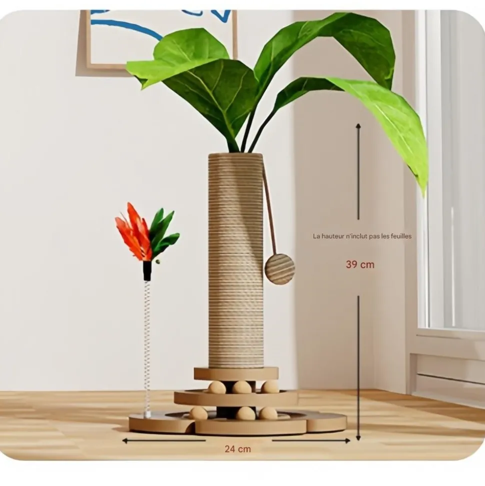 - Multifonctionnalité : Ce jouet offre quatre fonctions : piste de balle, poteau de griffage, jouet de plumes à ressort, balle suspendue et plantes simulées. Il permet aux chats de griffer, jouer, sauter et faire de l’exercice, tout en décorant votre maison.