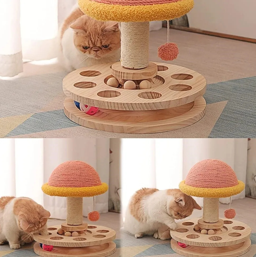 - Design unique : Le haut en forme de champignon en sisal rose avec une balle suspendue stimule le comportement de chasse des chats.