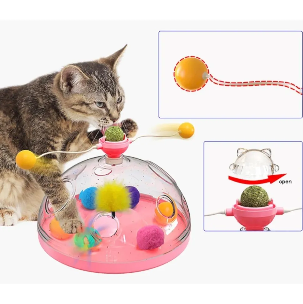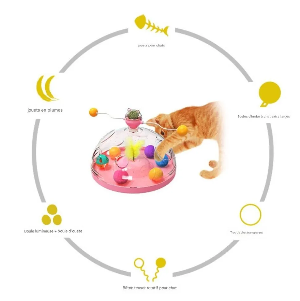 - Stimulation du jeu : La forme en moulin à vent rotatif stimule l’instinct de chasse du chat, le gardant actif et divertit.