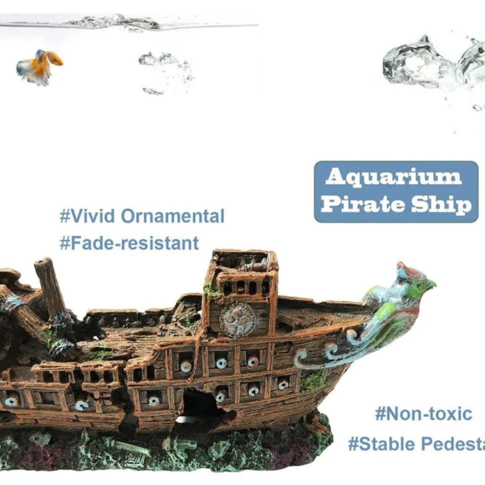 - Cette décoration de bateau pirate avec des détails exquis changera votre aquarium ordinaire. Nettoyez simplement cet accessoire d’aquarium et placez-le dans votre aquarium. Vous recevrez un aquarium élégant.