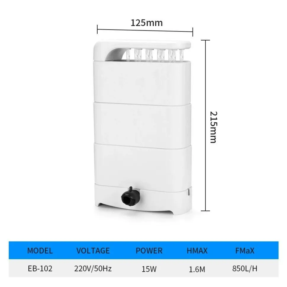 Filtre à tortue à faible niveau d’eau, petit aquarium à poissons peu profonds, style cascade, petite conception à réduction de bruit, pompe de filtration de purification d’eau Caractéristiques : ce produit est un filtre à faible niveau d’eau adapté aux aquariums, aux types de marais et autres boîtes d’élevage à faible niveau d’eau, et aux petits aquariums de filtration à faible densité avec une conception de paysage tridimensionnelle. La filtration par oxygénation en cascade d’air peut ajuster le niveau d’eau selon les besoins pour augmenter la quantité d’oxygène dissous. Équipé d’un matériau en coton filtrant, d’autres matériaux filtrants peuvent être ajoutés en fonction de la densité et du type de stockage. Puissance puissante et fonctionnement sans perturbation.Tension applicable : AC220~240VPuissance : 15 WDébit : 850L*H