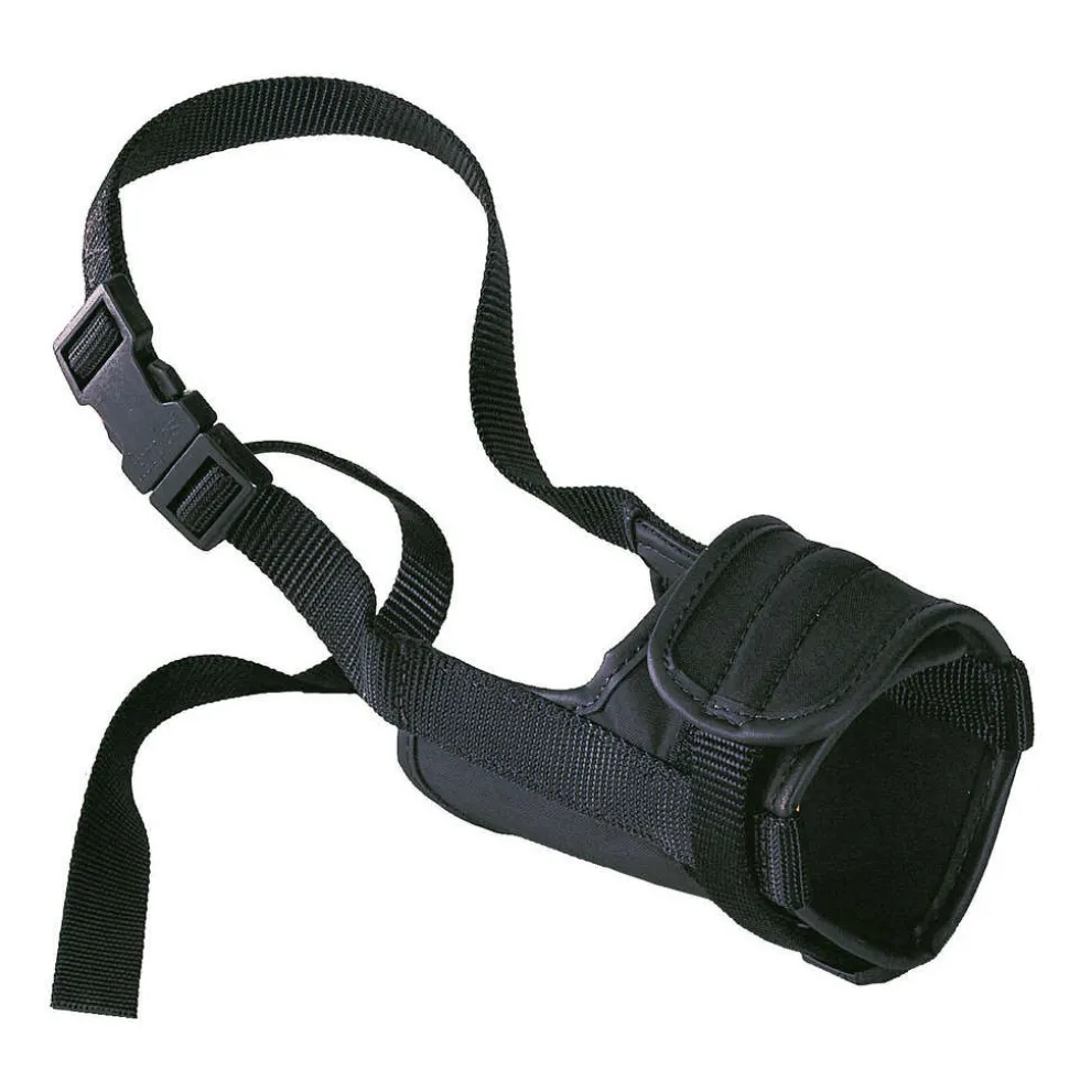 Il est conseillé de ne pas trop serrer la muselière. Veillez à pouvoir toujours passer un doigt entre la muselière et le museau de votre chien.
