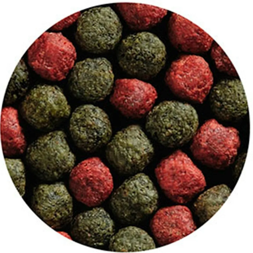 Nourriture koï d’étang 15 litres billes 6 mmNourriture d’étang granulats mix pour poissons.Aliment substantiel pour petits et moyens poissons d’étang.Contient des fibres qui favorisent le transit intestinal et facilitent la digestion.Nourriture pour Carpes koï de Bassin 15 litres.poids 4.8 kgKOI granules: Aliment complet pour poissons d’étang. Aliment complet idéal pour koïs moyens à grands.En granulés d’environ 6 mm.Conseil d’alimentation: quand la température de l’eau est en dessus de 10°C, nourrir plusieurs fois par jour.Ne donner pas plus que les poissons peuvent manger en quelques minutes.Enlever ce qui reste dans le bassin. Arrêter de nourrir quand la température de l’eau baisse en dessous de 10°C.Composition: Blé ; tourteau de soja ; farine de blé ; farine de volaille; farine de tournesol ; protéine de soja concentrée ; farine de protéines de plumes hydrolysée ; concentré protéique de luzerne ; lécithine ; phosphate monocalcique ; farine de poisson ; poudre de betteraves ; poudre de riz rouge ; produits de levure ; farine d’insectes ; spiruline ; algues (schizochytrium limacinum).Additifs : Additifs technologiques: antioxygènes, conservateurs. Additifs nutritionnels: vitamines: Vit.A: 11.000 UI/kg, Vit.D3: 2.969 UI/kg; Oligoéléments: fer (chélate d’hydrolysats de protéines) 40 mg/kg ; iode (iodate de calcium, anhydre) 3,3 mg/kg ; cuivre (chélate d’hydrolysats de protéines) 3,3 mg/kg ; manganèse (chélate d’hydrolysats de protéines) 13,3 mg/kg ; zinc (chélate d’hydrolysats de protéines) 40 mg/kg ; sélénium (levure séléniée inactivée) 0,2 mg/kgAdditifs sensoriels: colorants. Liants : bentonite 500 mg/kg. . Contient des protéines de type farine de poissons et/ou soluble de poissons et des protéines animales transformées dérivées de Insectes d’élevage et/ou v