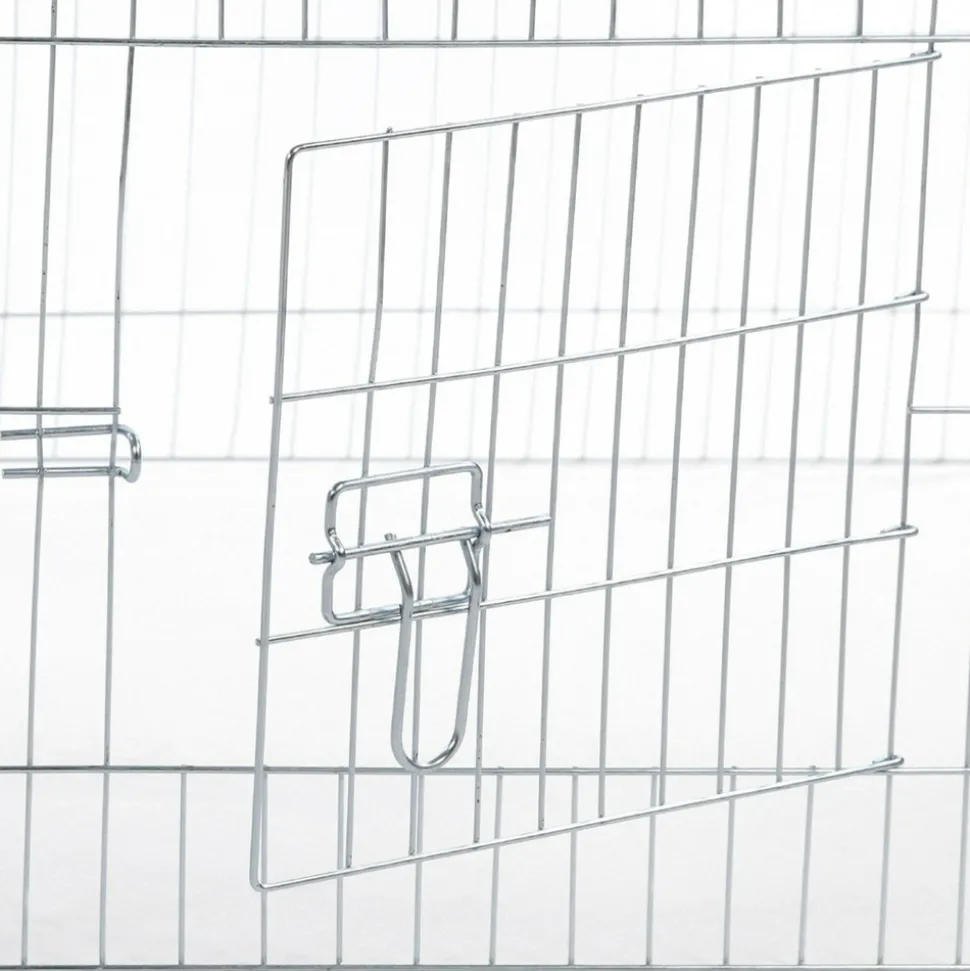 Offrez un espace détente sécurisé à vos petits animaux et rongeurs avec notre enclos grillagé en acier !Vos petits animaux bénéficieront d’un espace de vie d’une superficie de 1,35 m².Le toit amovible pare-soleil de cet enclos protège vos petits animaux préférés du soleil. Pratique avec son ouverture sur le dessus, vous aurez un accès plus facile à l’intérieur !Fermez les 2 portes frontales à l’aide des verrous !Dimensions du parc pour petits animaux- Dimensions globales hors-tout : L. 180 (composé de 2 parties chacune de 90 CM) x l. 75 CM- Hauteur sans toit : 50 CM- Hauteur avec toit : 75 CM- Dimensions des 2 portes frontales : L. 28 x l. 29,5 CM- Dimensions du toit amovible : L. 88 x l. 58,5 CM- Largeur maille structure : L. 14 x l. 3 CM- Largeur maille toit : L. 18 x 35 CM- Barreaux en acier zingué