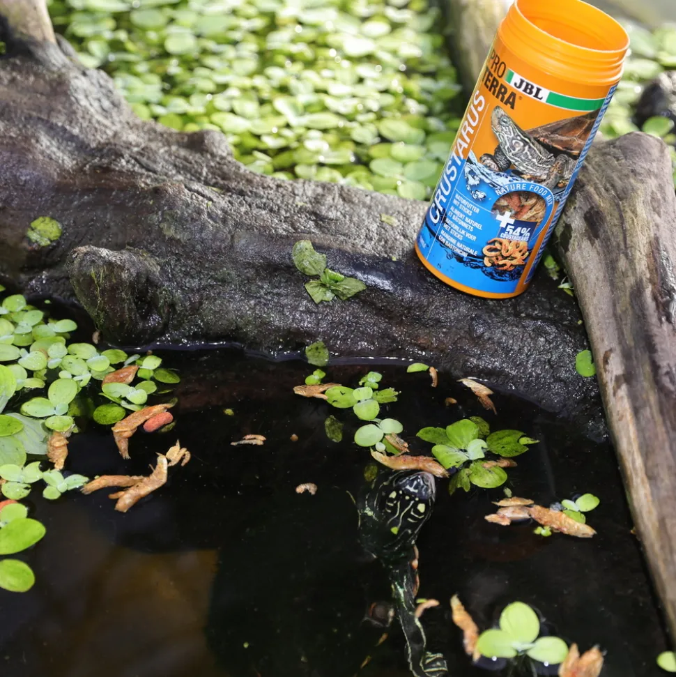 Votre petite protégée mérite le meilleur. La qualité de l’alimentation que vous lui proposez est essentielle pour son bien-être et sa santé. Voici une délicieuse nourriture à base d’écrevisses, de poissons, de crevettes et de bâtonnets soigneusement préparée pour régaler toutes les tortues aquatiques et cistudes. Crustarus contient des puces d’eau (environ 1 cm) délicatement séchées, des crevettes (environ 3 cm), des poissons (taille maximum 9 cm) et des bâtonnets à base de poisson (environ 1,5 cm) pour une alimentation naturelle et variée. Provenant d’eaux propres, nettoyés et naturellement séchés, les puces, crustacés et petits poissons composant Crustarus sont pour nos amies tortues des aliments purement naturels de très haute appétence. Crustarus favorise une croissance saine de la carapace chez toutes les espèces de tortues d’eau et de marais grâce à sa teneur naturelle riche en calcium conservé en son état brut originel. Crustarus, alimentation pour tortues d’eau : 250ml, sans ajout de colorants ni de conservateurs artificiels. Boîte étanche à l’eau et à la lumière avec écrevisses séchées, poissons, crevettes et bâtonnets de poisson. Couvercle, opercule et étiquette 100 % recyclables, scellage fraîcheur. Doseur intégré dans le couvercle.