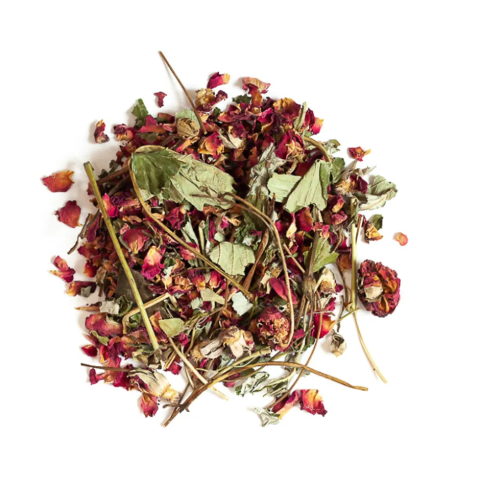 Feuilles de framboisier, rose et persil séchés naturellement pour une meilleure préservation de la qualité des produits, sans sucres ajoutés, sans additifs, sans conservateursQuantité recommandée : Une petite poignée par jour ou en mélange dans le foin habituel de votre animal pour le stimuler.Animaux concernés : lapins, chevaux et rongeurs (cochons d’inde, chinchillas, hamsters, rats, souris etc…)Poids : 150 gEmballé délicatement à la main par nos soins dans un sachet kraft 100% recyclableMatière première pour aliment des animaux
