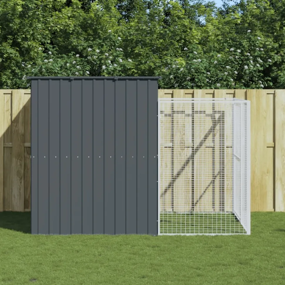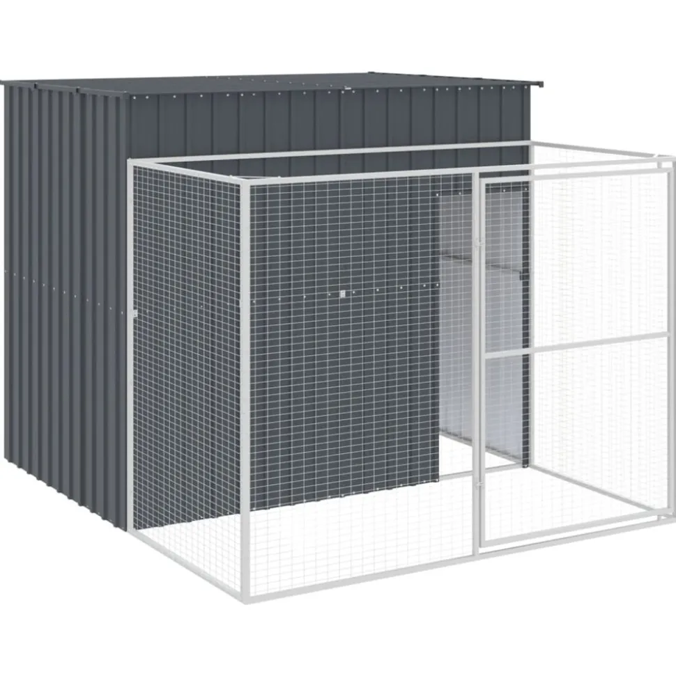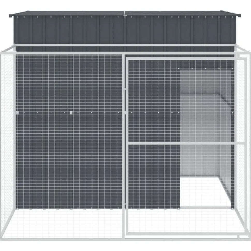 Offrez sécurité et confort à vos compagnons à quatre pattes grâce à cette niche avec enclos. Utilisation polyvalente : Associée à l’enclos allongé, cette niche polyvalente offre un grand espace à votre animal. Elle offre de multiples utilisations : jouer, faire de l’exercice, dresser ou simplement assurer la sécurité de votre chiot. Ce sera le paradis de jeu idéal pour vos amis à quatre pattes !Construction durable : Grâce à sa construction robuste en acier galvanisé, la niche pour chien est durable et conçue pour durer.Conception en maille : La conception en maille de l’enclos prolongé permet d’éviter les méfaits et les accidents inattendus tout en permettant la ventilation.Toit pratique : Le toit de la cage protège le chiot du soleil, de la pluie, de la neige et d’autres conditions météorologiques.Accès pratique : Il y a une entrée à la maisonnette et une porte avec un loquet sur l’enclos prolongé, toutes deux facilitant l’entrée et la sortie.Bon à savoir :Pour éviter les dommages causés par une forte accumulation de neige, nous vous recommandons de dégager le toit régulièrement en hiver.