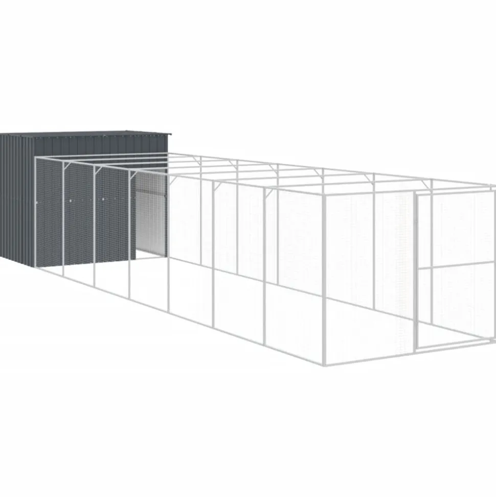 Offrez sécurité et confort à vos compagnons à quatre pattes grâce à cette niche avec enclos. Utilisation polyvalente : Associée à l’enclos allongé, cette niche polyvalente offre un grand espace à votre animal. Elle offre de multiples utilisations : jouer, faire de l’exercice, dresser ou simplement assurer la sécurité de votre chiot. Ce sera le paradis de jeu idéal pour vos amis à quatre pattes !Construction durable : Grâce à sa construction robuste en acier galvanisé, la niche pour chien est durable et conçue pour durer.Conception en maille : La conception en maille de l’enclos prolongé permet d’éviter les méfaits et les accidents inattendus tout en permettant la ventilation.Toit pratique : Le toit de la cage protège le chiot du soleil, de la pluie, de la neige et d’autres conditions météorologiques.Accès pratique : Il y a une entrée à la maisonnette et une porte avec un loquet sur l’enclos prolongé, toutes deux facilitant l’entrée et la sortie.Bon à savoir :Pour éviter les dommages causés par une forte accumulation de neige, nous vous recommandons de dégager le toit régulièrement en hiver.