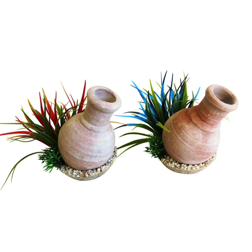 Arborant des finitions soigneusement élaborées, cette jarre en céramique s’accompagne de plantes artificielles colorées. Posée sur son lit de sable, elle abrite volontiers les poissons et les autres petits habitants de l’aquarium. Placée au fond de la cuve, cette décoration constitue une cachette parfaite pour vos petits compagnons. Ils pourront s’y reposer, aller et venir parmi la végétation ou se cacher simplement derrière la jarre après les jeux. Pour nettoyer cet élément décoratif, brossez les taches récalcitrantes et rincez soigneusement à l’eau claire.