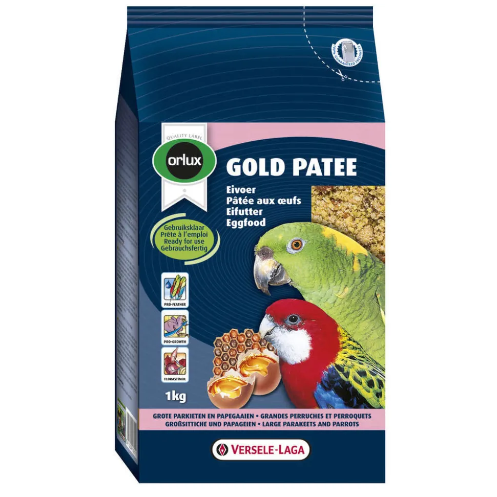 Aliment complémentaire pour oiseaux. Pâtée d’élevage et d’entretien pour grandes perruches et perroquets, prête à l’emploi. , Composition: Œufs et produits d’œufs (30%), produits de la boulangerie, extraits de protéines végétales, huiles et graisses, graines, miel, fruits, sucres, mollusques et crustacés, insectes, substances minérales, FOS, MOS. , Constituants analytiques: Protéine 17%, Teneur en matières grasses 16%, Cellulose brute 2%, Cendres brutes 5%, Calcium 1,30%, Phosphore 0,50%, Lysine 0,95%, Méthionine 0,35%, Thréonine 0,60%, Tryptophane 0,20%, Cystine 0,30%.