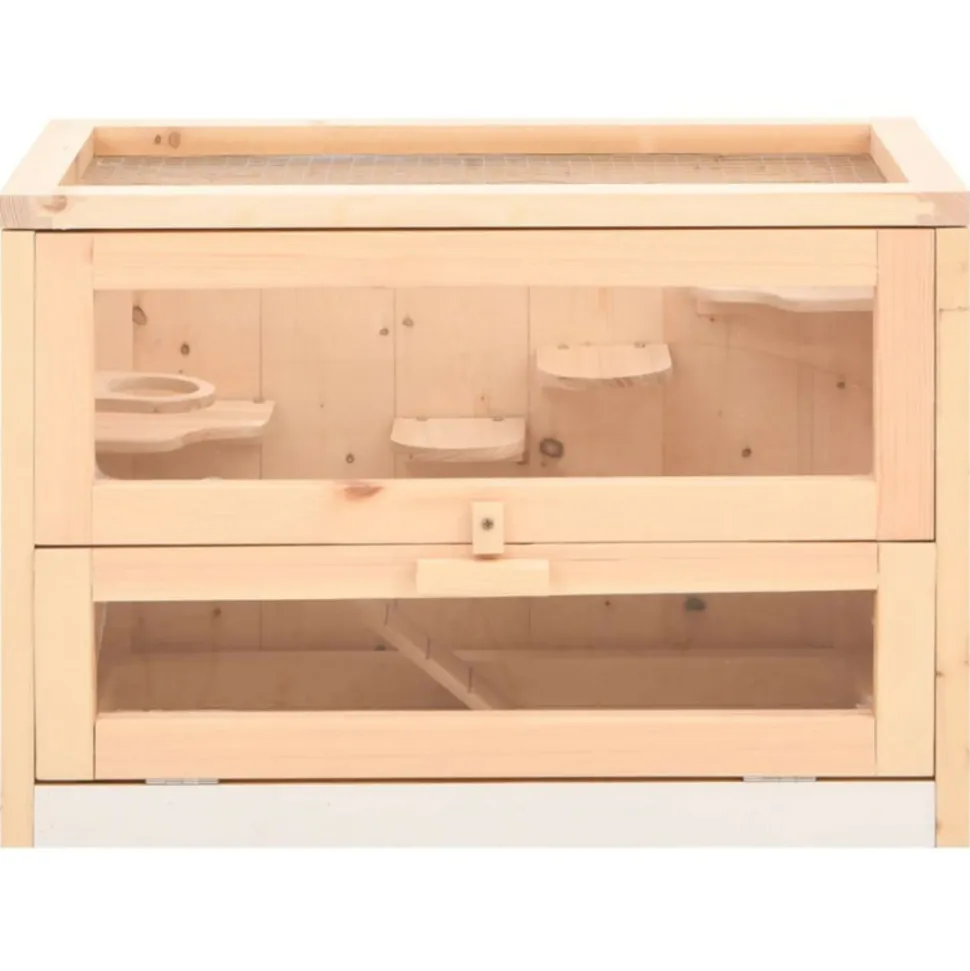 Cette cage à hamster en bois avec de multiples accessoires offre un endroit parfait pour que les petits animaux de compagnie puissent courir. Elle convient également aux petits gerbilles, souris, cochons d’Inde et autres animaux de taille similaire. Bois de sapin massif : le bois de sapin massif est un beau matériau naturel. Le bois de sapin ne se dessèche pas et ne se déforme pas lorsqu’il est exposé à l’humidité. Fabriquée en bois de sapin massif, la maison pour hamster est robuste et facile à nettoyer.Toit en treillis métallique : le toit en treillis métallique vous permet d’accéder facilement à vos petits animaux de compagnie et de maintenir une bonne circulation de l’air.Visibilité claire : l’écran frontal en acrylique transparent de la cage à souris vous permet de regarder vos amis à fourrure jouer et se détendre dans leur nouvelle maison.Nettoyage facile : la cage à hamster en bois possède une porte en bas qui s’ouvre pour faciliter le nettoyage. Matériau : bois de sapin massif (non traité), acrylique, PVC, contreplaquéDimensions totales : 60 x 35,5 x 42 cm (L x l x H)Dimensions intérieures : 55,5 x 31,5 x 39 cm (L x l x H)Dimensions de la porte : 55 x 15 cm (L x H)Taille de la maille : 1 x 1 cm (L x l)L’assemblage est requisMatériau : bois de sapin massif (non traité), acrylique, PVC, contreplaquéDimensions totales : 60 x 35,5 x 42 cm (L x l x H)Dimensions intérieures : 55,5 x 31,5 x 39 cm (L x l x H)Dimensions de la porte : 55 x 15 cm (L x H)Taille de la maille : 1 x 1 cm (L x l)L’assemblage est requis