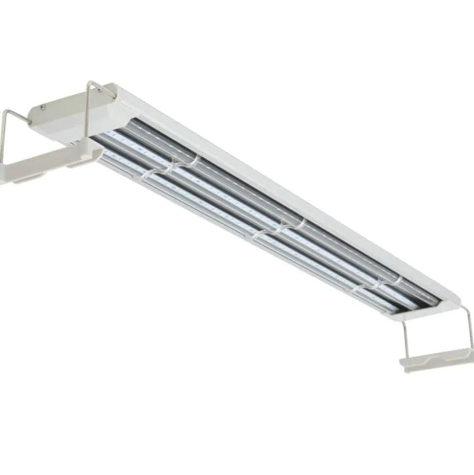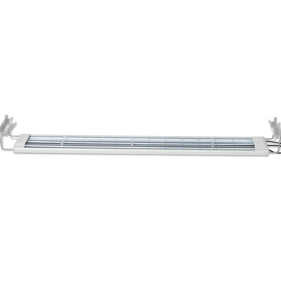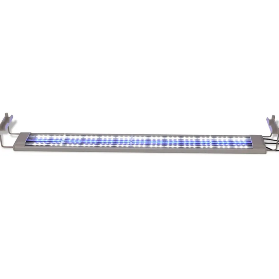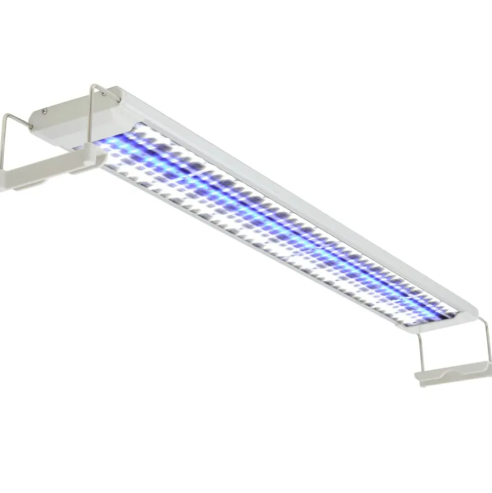 Cette lampe d’aquarium a été spécifiquement conçue pour les aquariums. Ses 117 ampoules LED émettent de la lumière bleue et blanche, en créant une atmosphère agréable la nuit et en fournissant aux plantes et aux algues la lumière dont elles ont besoin. La technologie LED est à faible consommation. Grâce au support réglable, la lampe peut être placée de manière stable sur le dessus de n’importe quel aquarium d’une longueur de 80-90 cm.
