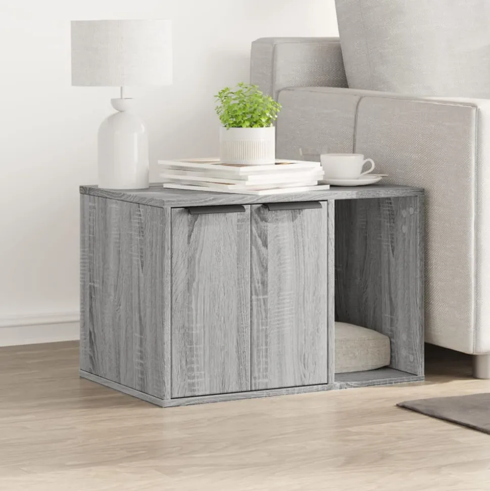 Offrez à votre chat un espace privé confortable avec le meuble de bac à litière pour chat tout en gardant le style de votre maison harmonieux ! Matériau stable et durable : le bois d’ingénierie est un matériau durable et stable dont la surface lisse résiste à l’humidité, à la déformation et au fendillement, ce qui en fait un choix fiable pour divers projets. Conception discrète : le meuble de bac à litière pour chat vous permet de cacher une litière ou un lit pour chat à l’intérieur, ce qui permet de garder la maison propre et de s’intégrer parfaitement à votre espace. Multifonctionnelle : le meuble pour bac à litière sert non seulement de maison confortable pour le chat, mais aussi de table d’appoint ou d’armoire de rangement pratique, tandis que la plate-forme supérieure offre un espace idéal pour exposer des cadres photo, des plantes et d’autres petits objets décoratifs. Installation personnalisable : vous pouvez placer les portes à gauche ou à droite de l’ouverture de l’armoire, selon vos préférences personnelles ou l’espace requis. Entretien facile : grâce à sa surface lisse, le meuble de bac à litière pour chats est facile à nettoyer avec un chiffon humide et nécessite moins d’entretien. Bon à savoir :Le coussin affiché sur l’image est fourni à titre d’illustration uniquement et n’est pas inclus dans la livraison.