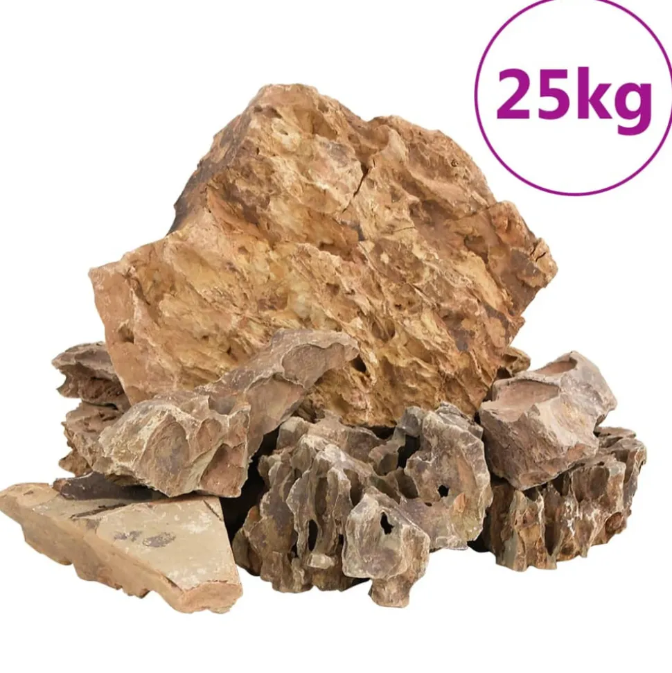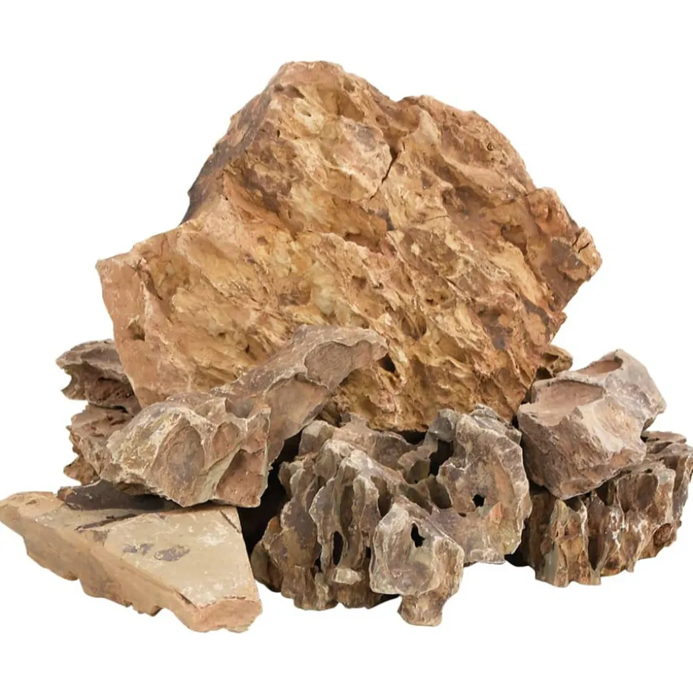 Ces pierres du dragon se présentent sous des formes variées, donnant un aspect attrayant et distinctif à votre aquarium. Naturelle et sûre : la pierre du dragon est 100 % naturelle et sans danger. Elle ne contient pas d’additifs ou de revêtements artificiels, elle se comporte donc de manière neutre vis-à-vis de l’eau et ne libère aucune substance polluante.Décoration : avec leur belle forme naturelle, les pierres du dragon pour aquarium sont un élément central attrayant et détaillé pour votre aquarium.Avantages : grâce à leur surface fortement texturée et piquée, les pierres du dragon pour aquarium permettent de fixer facilement les plantes et les mousses. En outre, il y a de nombreux petits trous et mini-cavernes formés par l’érosion sur les pierres du dragon, ce qui en fait une cachette idéale pour les petites crevettes et poissons.Nombreuses applications : ces pierres du dragon conviennent également aux micro-paysages, à l’aménagement des jardins, à la présentation des bonsaïs, etc.