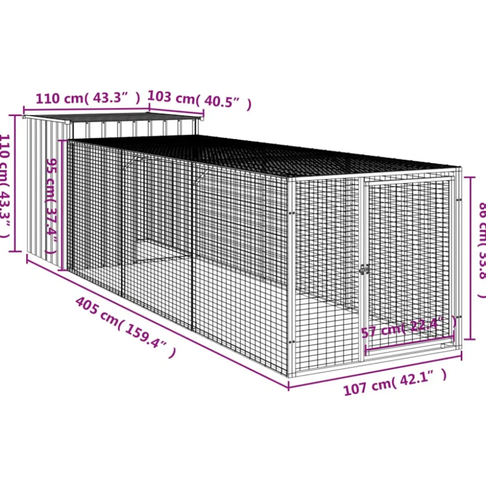 Ce poulailler avec cour est un choix parfait pour vos poulets, poules et autres petits animaux et les maintient à l’aise. Utilisation polyvalente : combiné avec la cour étendue, le poulailler polyvalent offre beaucoup d’espace à vos poules. Il présente de multiples utilisations : jouer, faire de l’exercice ou simplement garder vos poules en sécurité. Ce sera le paradis de jeu parfait pour vos animaux !Construction durable : grâce à sa construction robuste en acier galvanisé, le poulailler est durable et fait pour durer.Conception en maille : la conception en maille du poulailler aide à prévenir les méfaits et les accidents inattendus tout en permettant la ventilation.Toit pratique : le toit du poulailler protège les poulets du soleil, de la pluie, de la neige et d’autres conditions météorologiques.Accès pratique : il y a une entrée à la maison pour animaux et une porte avec un loquet sur la cour prolongée, les deux facilitant l’entrée et la sortie. Couleur : anthraciteMatériau : acier galvaniséDimensions totales : 110 x 405 x 110 cm (l x P x H)Poulailler :Dimensions extérieures : 110 x 103 x 110 cm (l x P x H)Dimensions intérieures : 104 x 90 x 107 cm (l x P x H)Taille de l’entrée : 47 x 80 cm (l x H)Cour étendue :Dimensions extérieures : 107 x 307 x 95 cm (l x P x H)Dimensions intérieures : 104 x 304 x 92 cm (l x P x H)Dimensions de la porte : 57 x 86 cm (l x H)L’assemblage est requisLa livraison contient :1 x poulailler1 x cour étendueCouleur : anthraciteMatériau : acier galvaniséDimensions totales : 110 x 405 x 110 cm (l x P x H)Poulailler :Dimensions extérieures : 110 x 103 x 110 cm (l x P x H)Dimensions intérieures : 104 x 90 x 107 cm (l x P x H)Taille de l’entrée : 47 x 80 cm (l x H)Cour étendue :Dimensions extérieures : 107 x 307 x 95 cm (l x P x H)Dimensions intérieures : 104 x 304 x 92 cm (l x P x H)Dimensions de la porte : 57 x 86 cm (l x H)L’assemblage est requisLa livraison contient :1 x poulailler1 x cour étendue