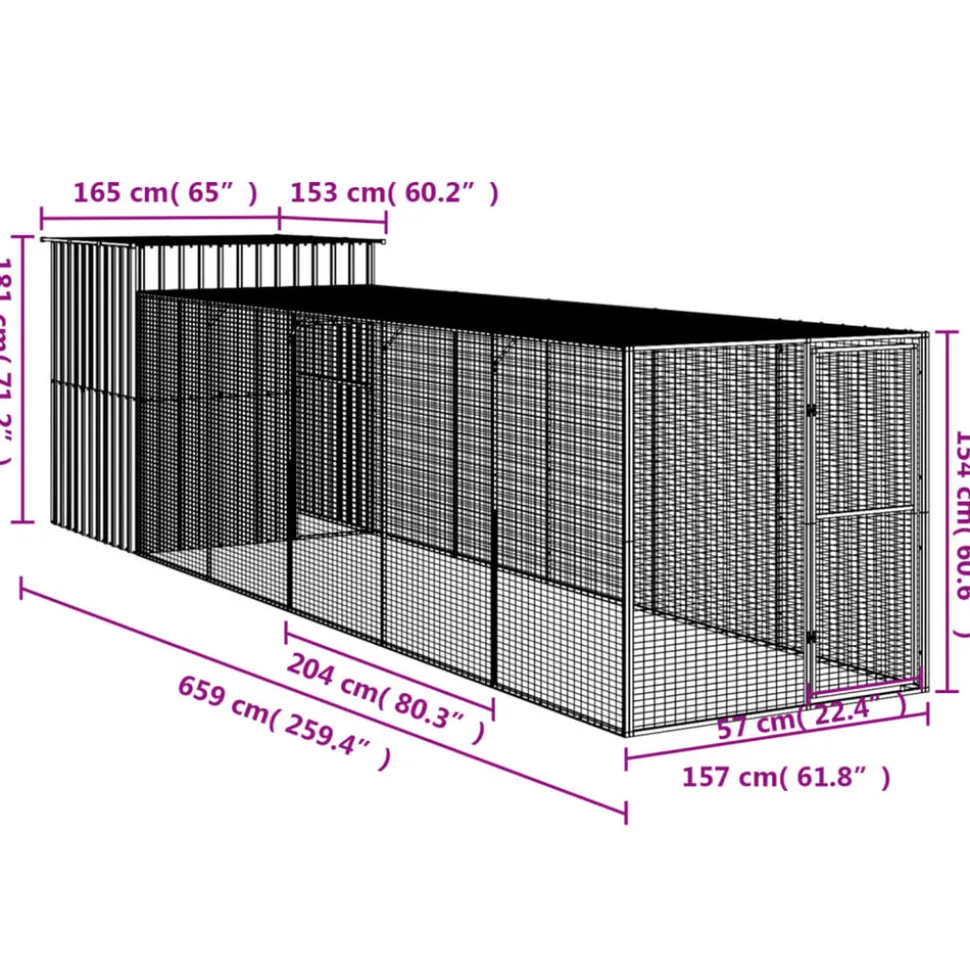 Ce poulailler avec enclos est idéal pour vos poules, poules et autres petits animaux et assure leur confort. Utilisation polyvalente : Associé à son enclos allongé, ce poulailler polyvalent offre un grand espace à vos poules. Il offre de multiples possibilités : jouer, faire de l’exercice, s’entraîner ou simplement assurer la sécurité de vos poules. Ce sera le paradis de jeu idéal pour vos animaux !Construction durable : Grâce à sa construction robuste en acier galvanisé, le poulailler est durable et conçu pour durer.Conception grillagée : La conception grillagée du poulailler permet d’éviter les méfaits et les accidents inattendus tout en permettant la ventilation.Toit pratique : Le toit du poulailler protège les poules du soleil, de la pluie, de la neige et d’autres intempéries.Accès pratique : Il y a une entrée au poulailler et une porte avec loquet sur le poulailler prolongé, ce qui facilite l’entrée et la sortie.Bon à savoir :Pour éviter les dommages causés par une forte accumulation de neige, nous recommandons de dégager le toit régulièrement pendant l’hiver.