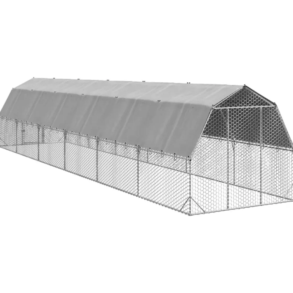 Avec ce poulailler, vous pouvez créer un grand espace pour que vos poules puissent courir. Construction robuste : fabriqué à partir d’un cadre en acier galvanisé, ce poulailler assure une durabilité à long terme et une résistance à la rouille, offrant un environnement sécurisé pour vos poulets.Toit résistant à l’eau : le toit résistant à l’eau protège vos poules du soleil et de la pluie, ce qui permet de garder le poulailler sec et d’offrir une protection fiable à vos poules.Conception en maille : le fil à mailles hexagonales offre une excellente protection contre les prédateurs tout en permettant une bonne ventilation, gardant vos poulets en sécurité et à l’aise.Accès pratique : ce poulailler accessible est doté d’une porte verrouillable qui vous permet de nettoyer, de nourrir et d’interagir facilement avec vos poulets tout en empêchant les intrus indésirables d’entrer, vous offrant ainsi une tranquillité d’esprit totale.Utilisation polyvalente : le poulailler polyvalent sert à de multiples fins : jouer, faire de l’exercice, s’entraîner ou simplement assurer la sécurité de vos poules. Il sera le paradis de jeu idéal pour vos animaux, notamment les oiseaux, les lapins, les canards, les oies et bien plus encore.