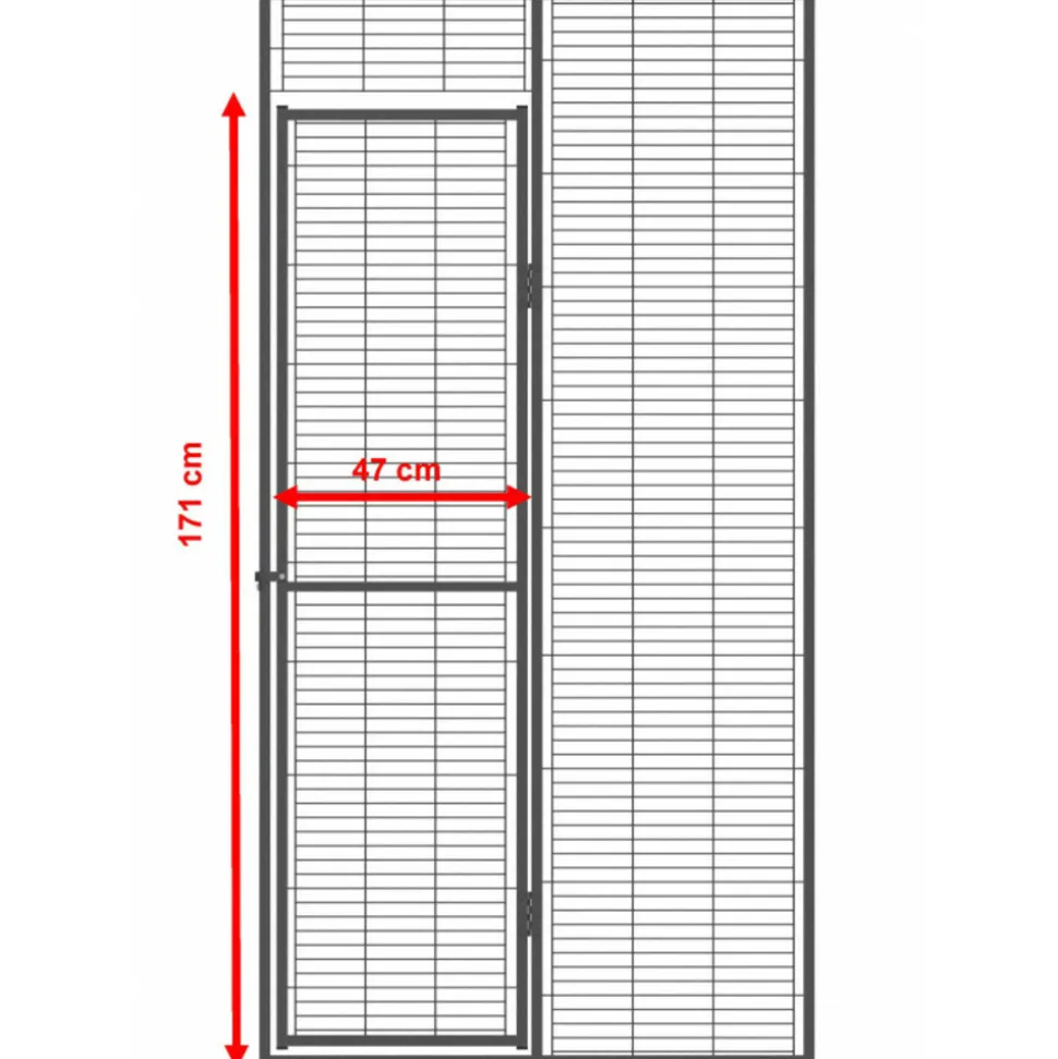 Nous vous présentons notre volière de jardin pour perroquets. Cette volière est parfaitement adaptée pour les yacos, les aras, les cacaotes,…volière de 2m² avec porte permettant de faciliter l’accès à l’intérieur de la volière.le système de fermeture de la porte permet l’usage de cadenas de sécurité de multiples dimensions.avec une hauteur de 195 cm, cette volière nous permettra d’entrer debout à l’intérieur de celle-ci.toit maille.composée de 3 panneaux en mailles en acier revêtus d’une peinture spéciale non toxique pour l’animal, respectueuse de l’environnement et résistante à la corrosion, et de 2 panneaux opaques coupe-vent. Ces panneaux ont une maille dite horizontale en fil de diamètre 3.4 mm de grosseur. La distance entre les fils verticaux est de 25 mm et a distance entre les fils horizontaux est de 155 mm. Cette maille est parfaitement adaptée à vos animaux pour qu’ils puissent grimper le long des parois sans risquer de lésions articulaires ni musculaires.le montage des accessoires est très facile.l’alimentation de vos oiseaux sera facilitée grâce à ses gamelles en acier inoxydable et son plateau giratoire incorporé au panneau. Vous pourrez ainsi nourrir vos animaux depuis l’extérieur de la volière.cette volière dispose d’un système d’ancrage au sol pour une parfaite résistance aux intempériesdimensions 205 x 105.6 x 200composée de :4 panneaux mailles pour perroquets1 panneau avec porte en maille perroquets1 panneau avec support giratoire pour gamelles en acier inoxydable2 élément de toit maille4 ancrages au sol18 agrafes de fixation des panneaux2 gamelles en acier inoxydable de 0.61 cm de diamètre chacune.livraison france metropolitaine